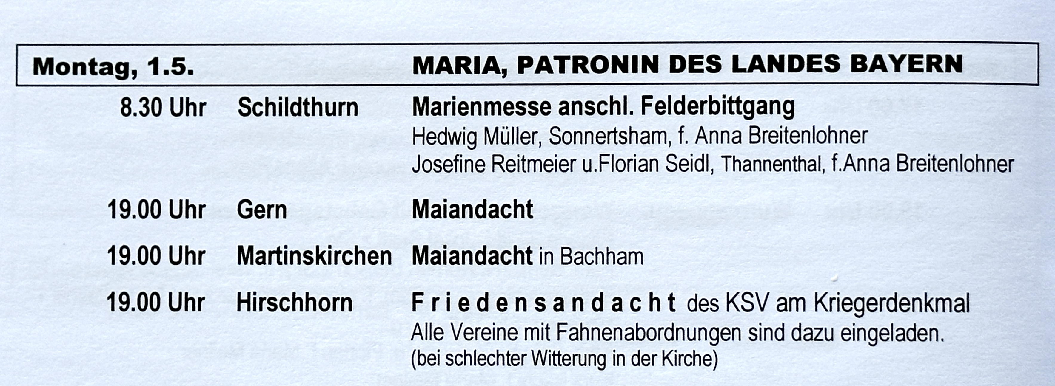 Friedensandacht des KSV Hirschhorn am Kriegerdenkmal. Alle Vereine mit Fahnen sind hierzu eingeladen. Bei schlechter Witterung findet die Andacht in der Pfarrkirche statt.